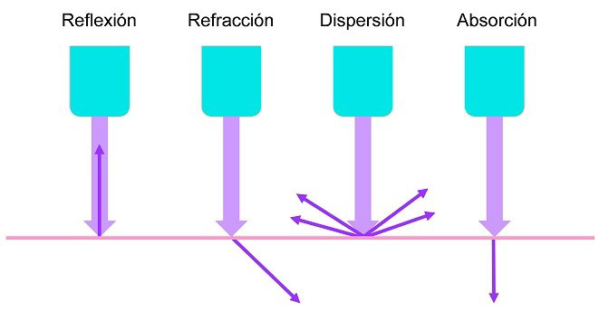 cambio de dirección del ultrasonido al incidir sobre una superficie sin atravesarla